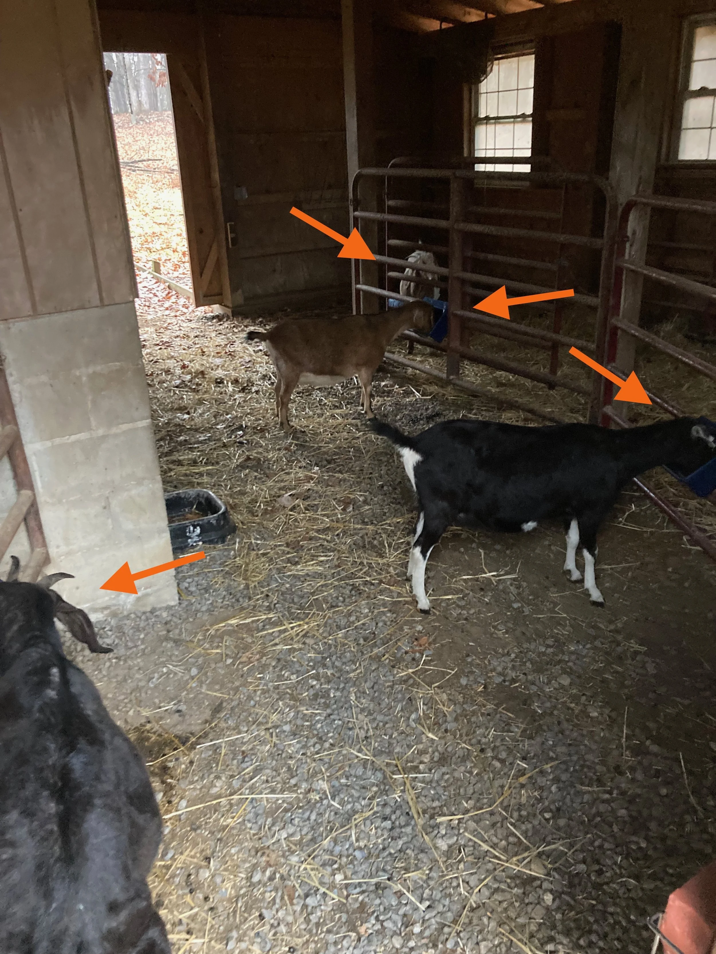 A quick update on the goats, y’all. We found a wonderful vet who came to visit and check them out last Wednesday. We learned a TON about nutrition, how to check for worms and anemia, goat lice, and bovine probiotics. All four goats were vaxxed and had their hooves trimmed, Apple and Jemima had blood drawn for pregnancy tests (we find out for sure early next week; vet thinks they are, in fact, preggers but that if so, they still have another 4-6 weeks or so to go), Lefty was treated for worms and lice as well as given an immune booster (she is still pretty compromised post-listeria), and we changed their feed after learning about male goat susceptibility to stones due to having urethras that are tiny and become increasingly so near the exit. Overall, they looked great, and we’re hoping for two sets of twins! (AND, Lefty has become a real screamer when she sees us. It’s the best.)