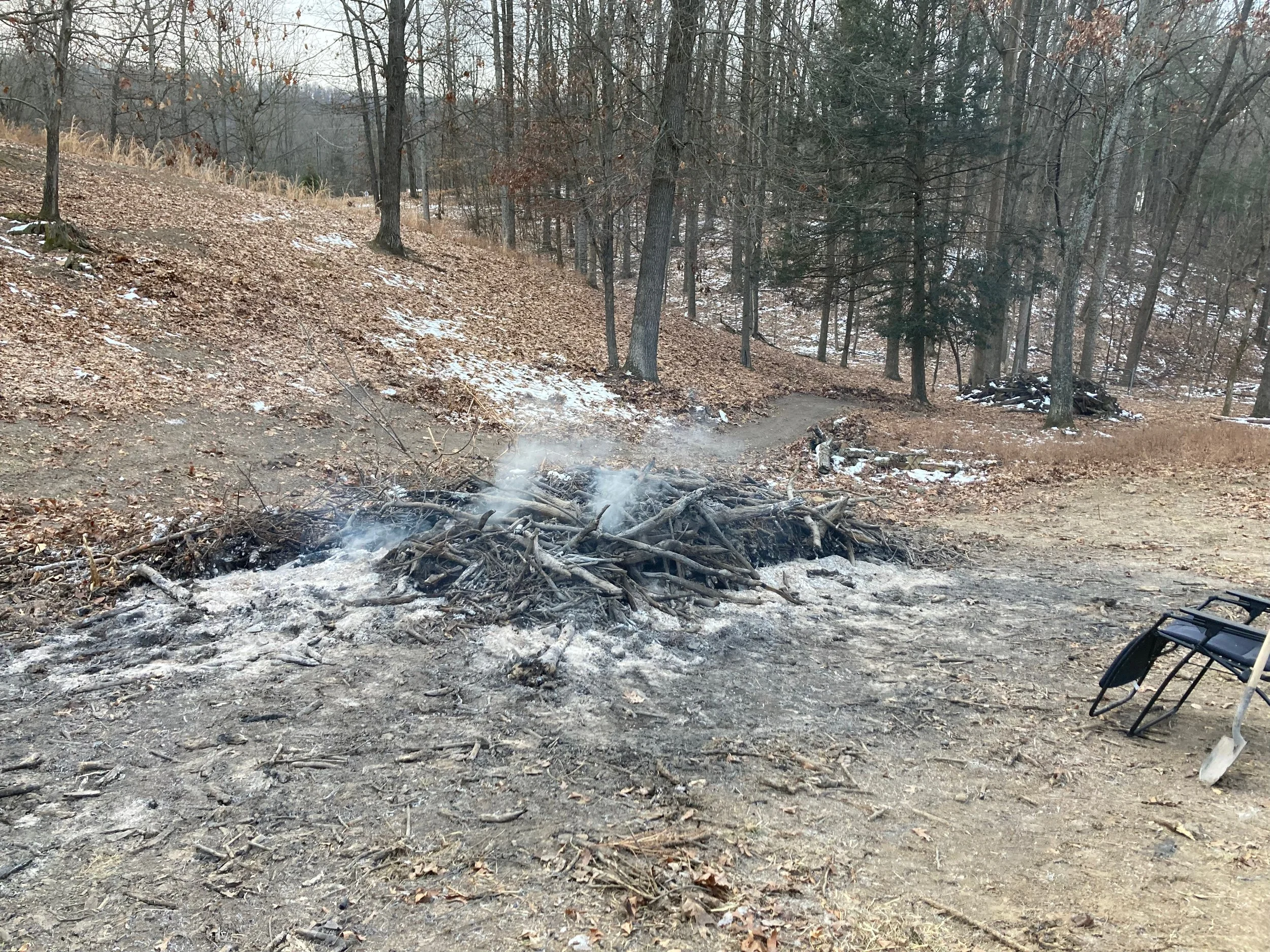 One of my gifts was to arrange for the professional burning of the 4-year-old burn pile we inherited in WV. Everyone just says, “throw some kerosene on it after you’ve had some snow, and let it go.” But it was a big pile, and Tom tends to be nervous, and then when I started asking, people actually said, “Oh yeah, you should call the fire department to give them a head’s up.” And then I called the previous owners, and they (fonts of info as always) told me to call the local company and see if they wanted to use our behemoth as a training fire.