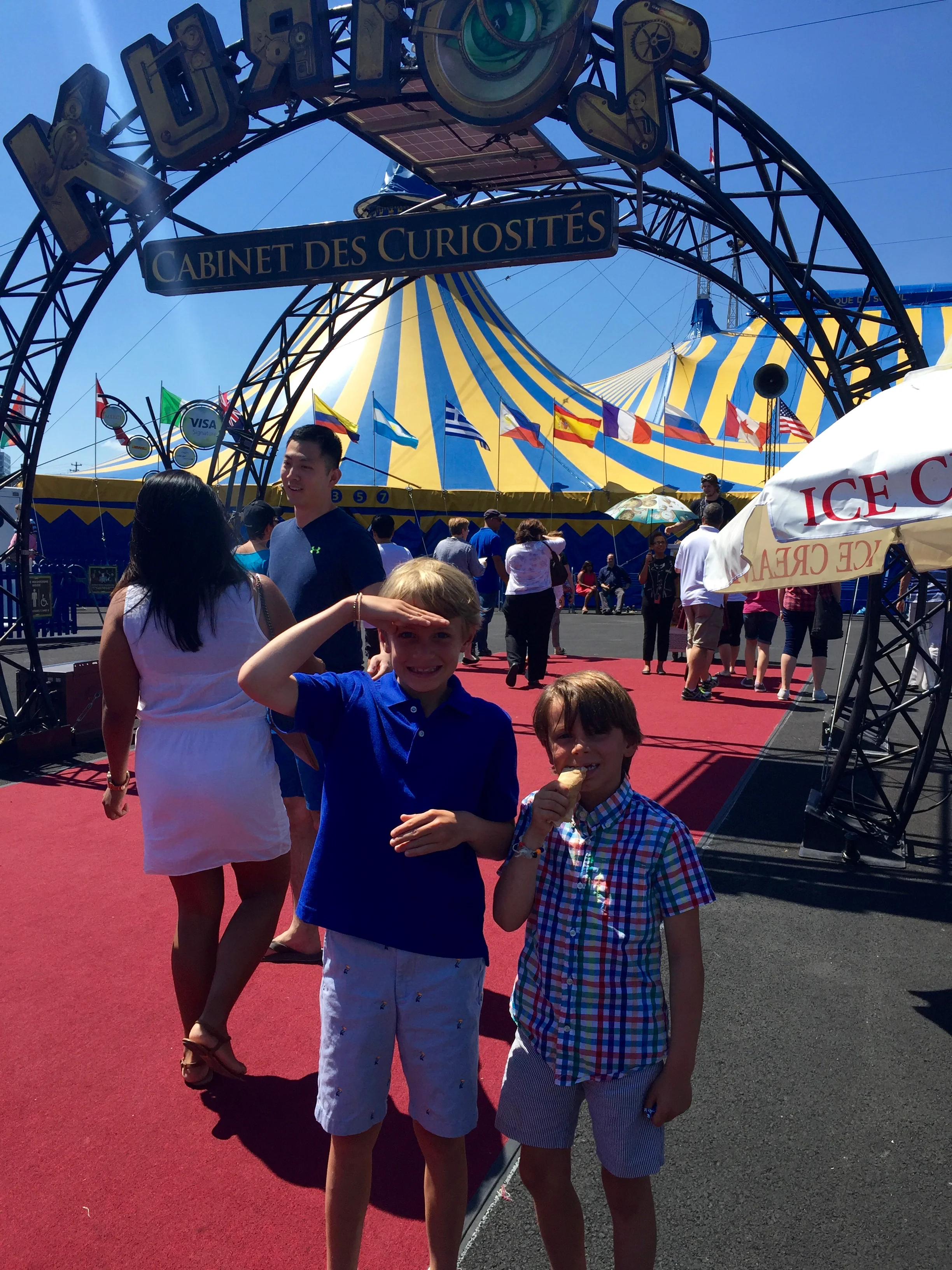 Today I took the boys to Cirque du Soleil's Kurios show which is under a blue- and yellow-striped big top in Tyson's Corner, VA. The tickets seemed a touch pricey, but boy were they worth every penny: I really feel we got more than we paid for.