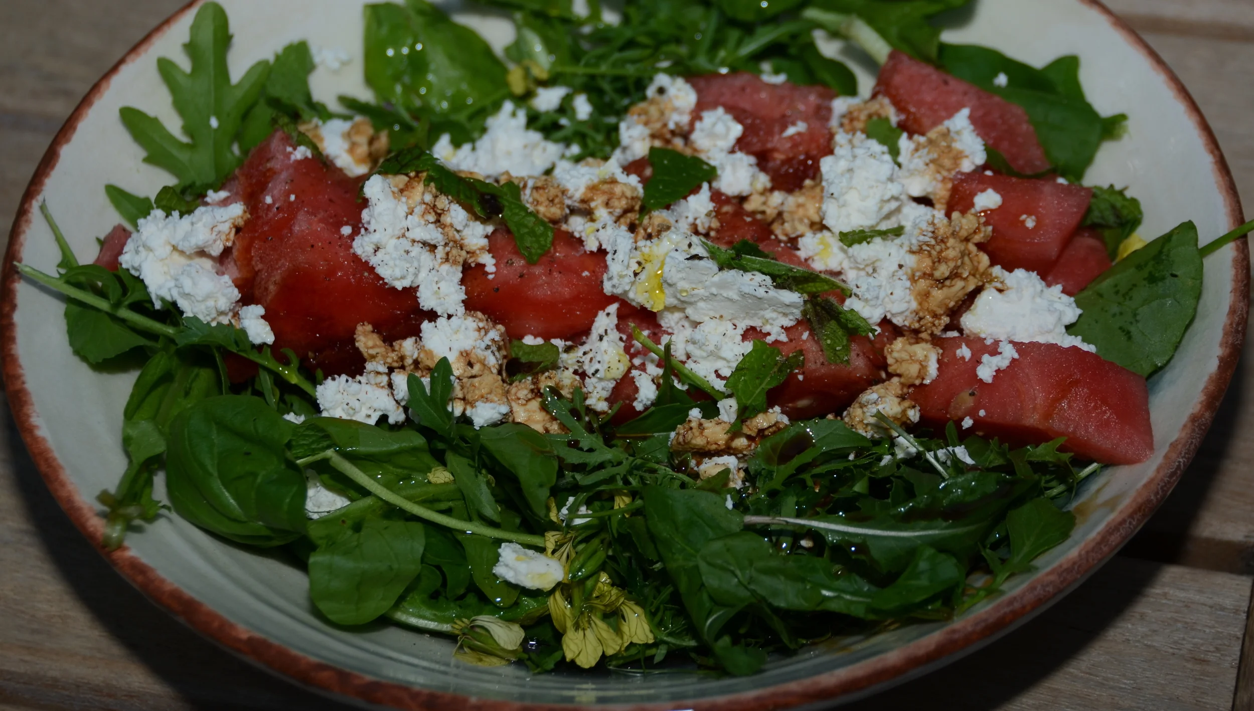 I also oven-roasted some salmon with a maple-Dijon sauce and topped with tiny spring onions from our yard. We pushed The Nut off the table and settled in.