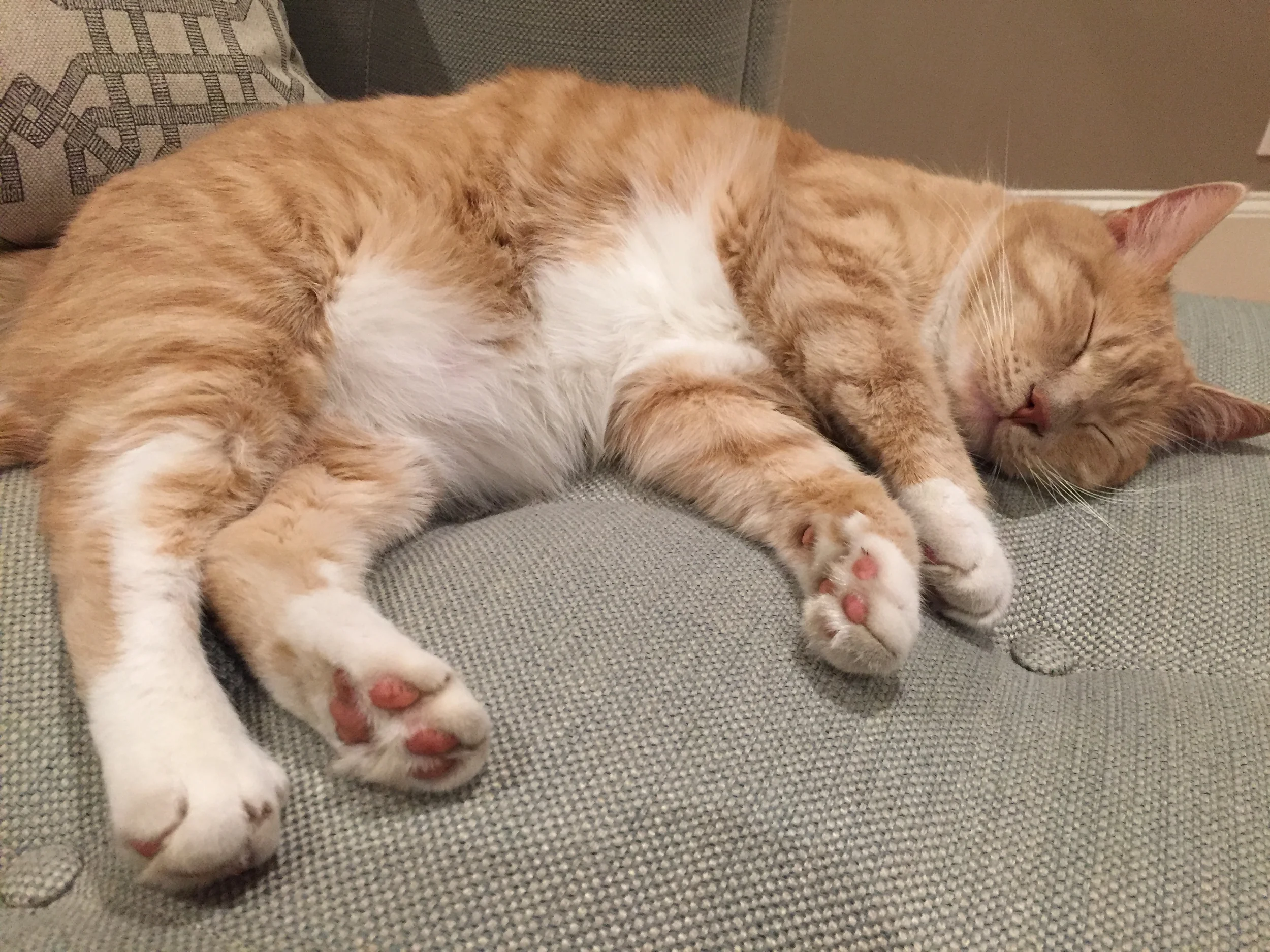 He's been trolling the 'hood for hours. Now, it's rest time.