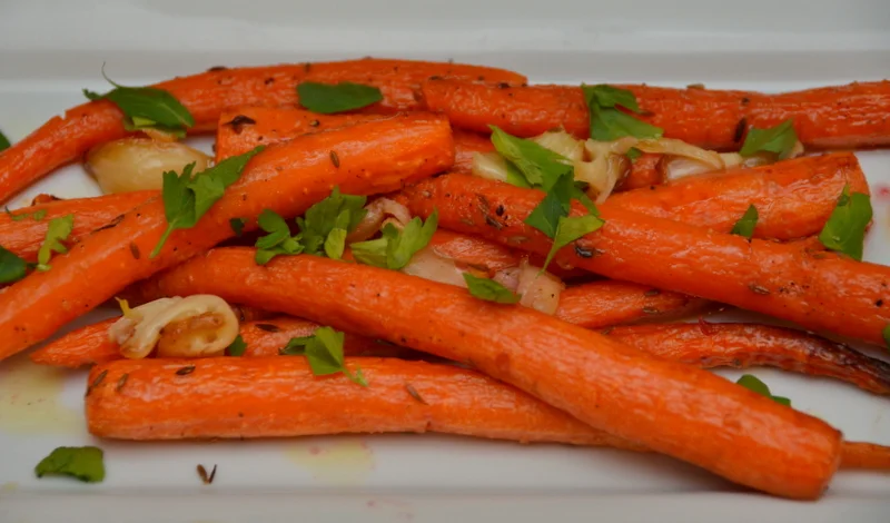 Roasted Carrots with Cumin, Blood Orange Vinaigrette and Crème Fraîche