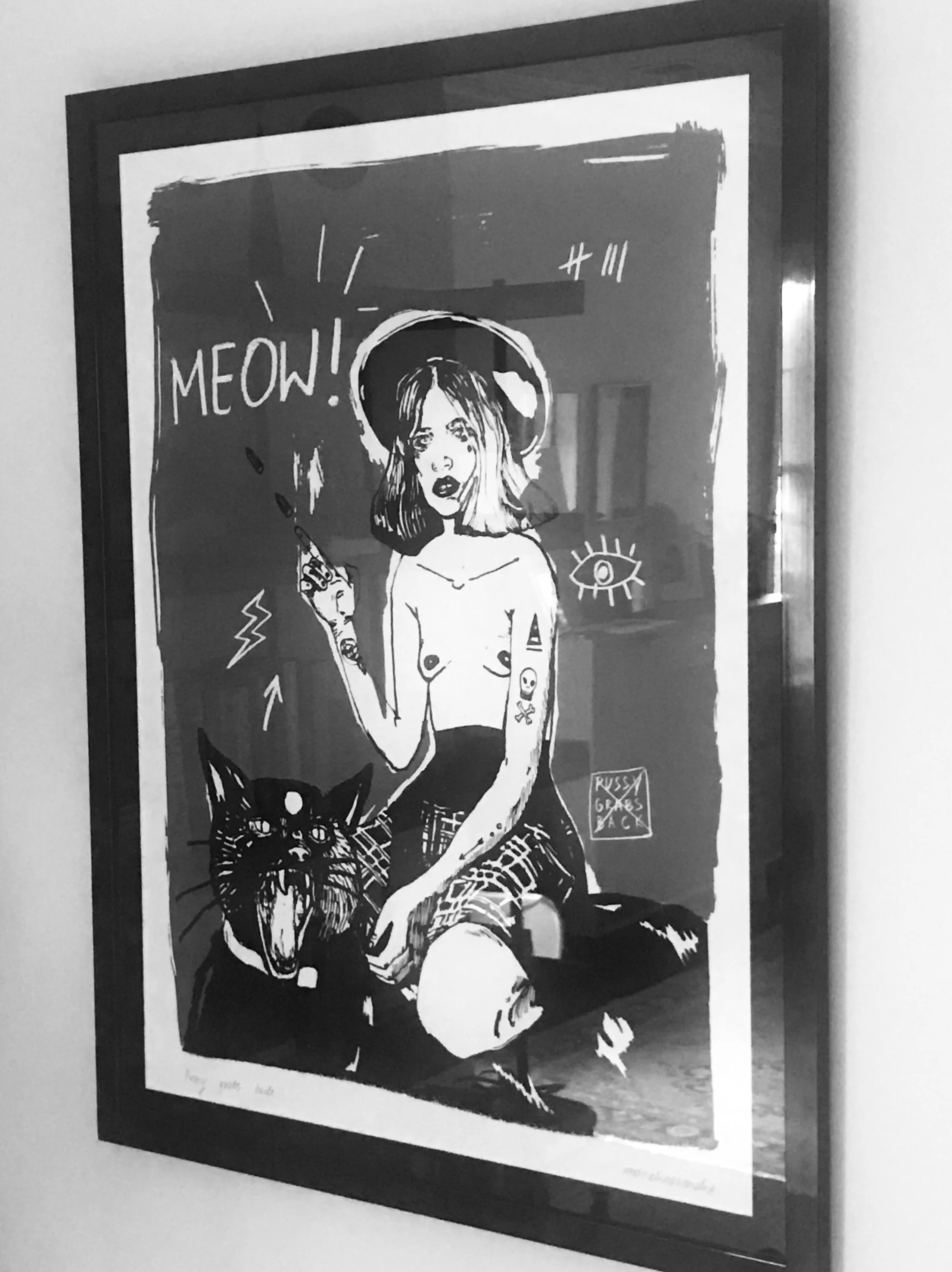 In this year of our lord, 2020, as Cosby and Weinstein are in jail and #MeToo is, mercifully, everywhere, and men are realizing shit, a repairman who was in my home for no more than 2 minutes today to fix a small scratch on our new bed, looked at my fabulous Meow print: