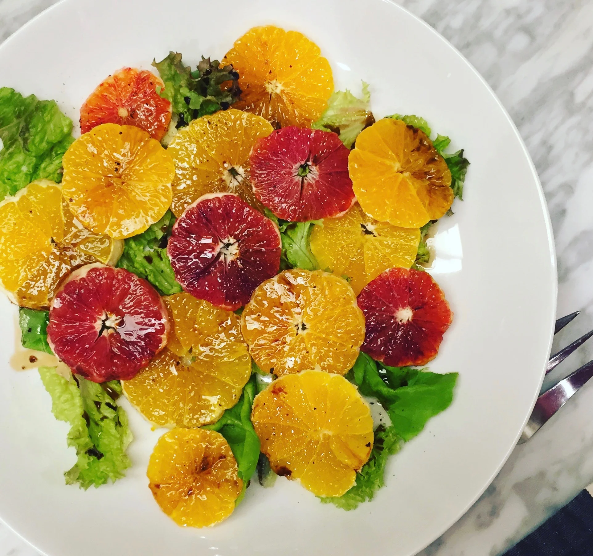 Can you even? Blood oranges, Sumo mandarins, satsumas, lettuces, olive oil, aged Balsamic, salt and pepper