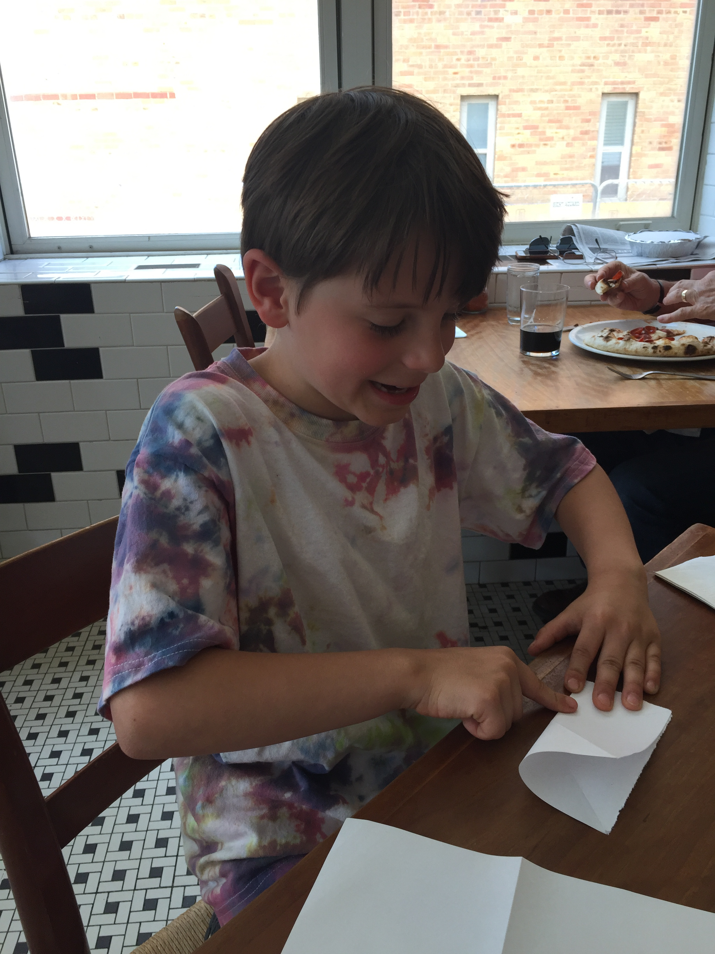 Ol and I went out to lunch on his last day of school. He loves to make origami cranes.