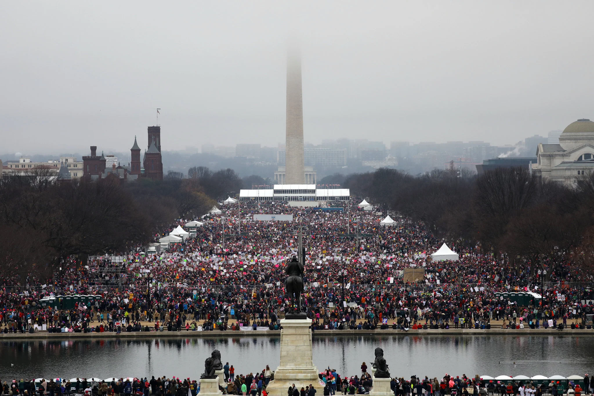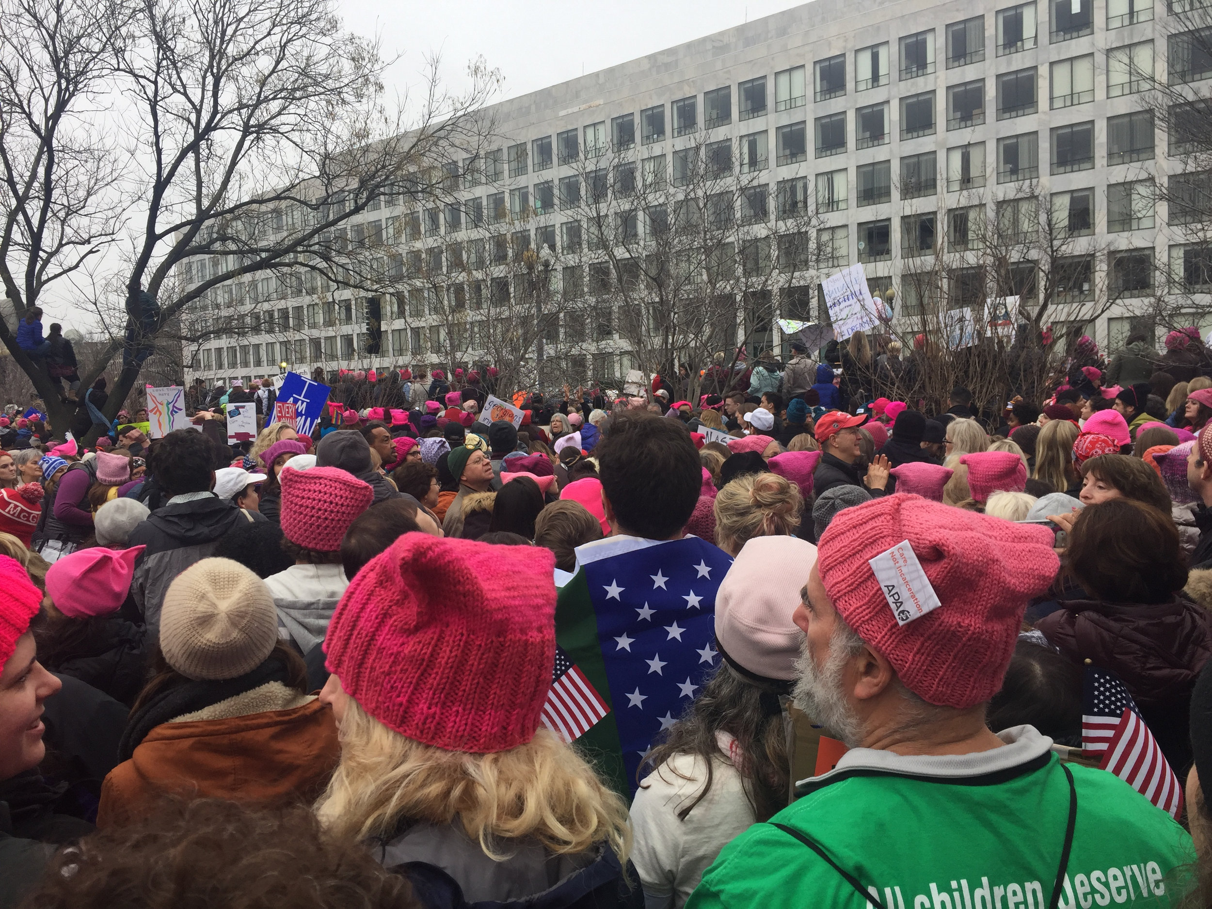 Because hundreds of thousands turned out, we filled the march route without moving. The same was true in Chicago. The marching part of the march was called off. We became, instead, a glorious free-form rally, covering the Mall and blocks of Independence and Constitutions Avenues among many others.