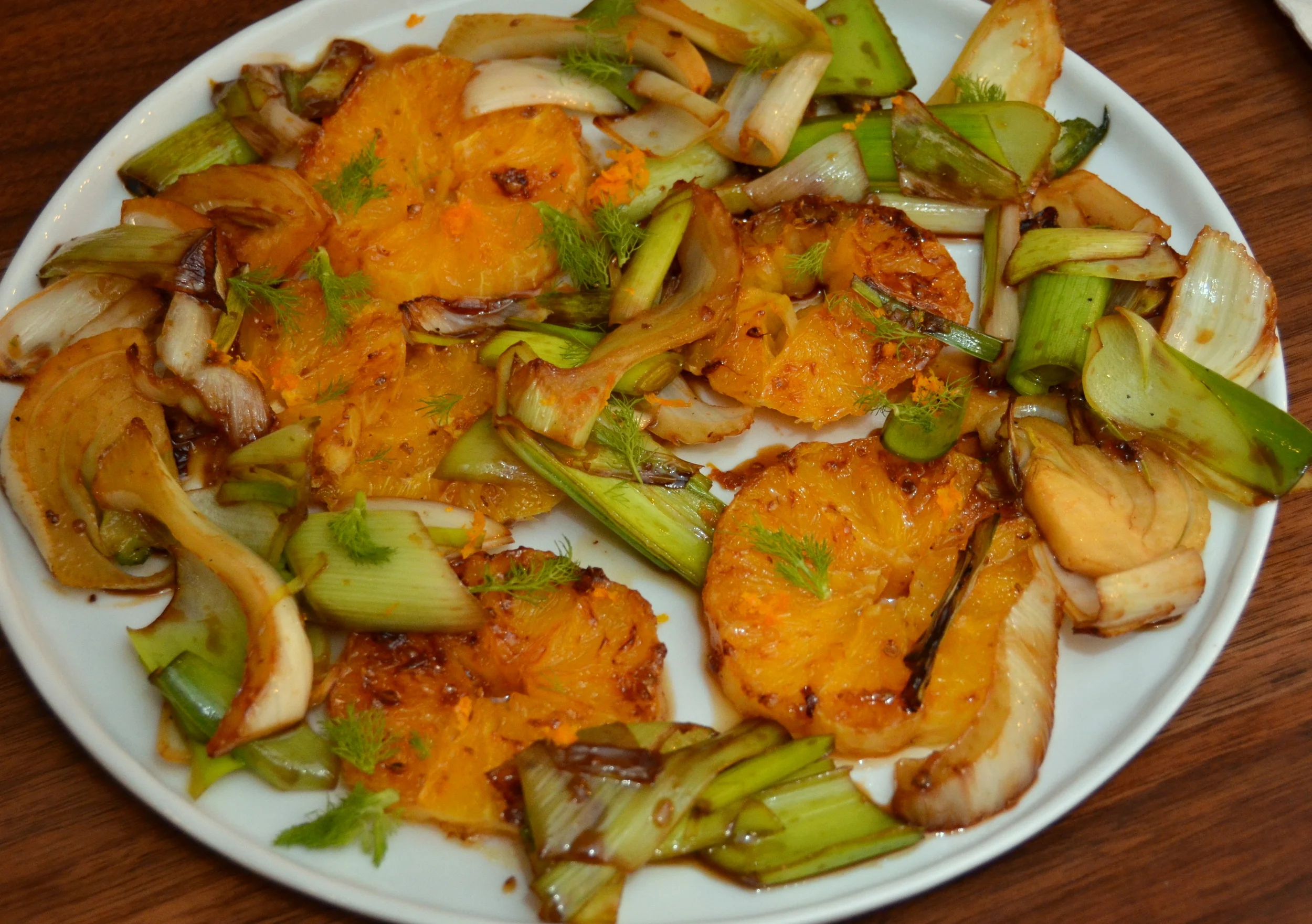 This warm salad, my caramelized fennel, leeks and orange, never disappoints. It's such a simple combination of flavors and textures and pairs beautifully with a variety of entrees.