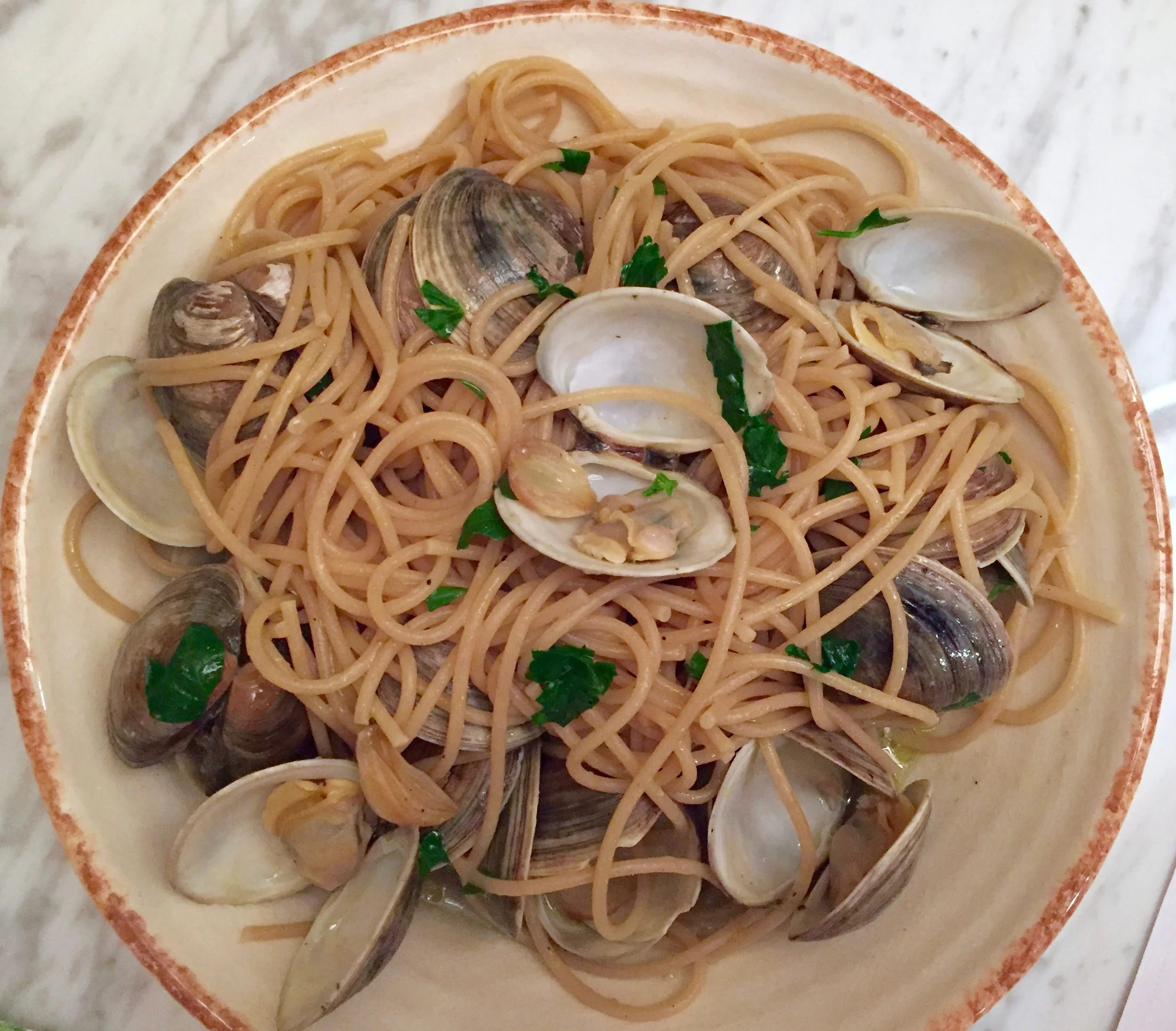 I was so snappy tonight. Tired and peevish and achy and short. I didn't like my attitude, but the traffic and errands and boxes and questions, homework and whining and why the hell won't the water just boil already?! I cursed the rain as I listened to the unfamiliar song it played on our house, and just when I thought I'd burst, Tom got home and finished bedtime (kind of), and I cooked the clams and made a salad.