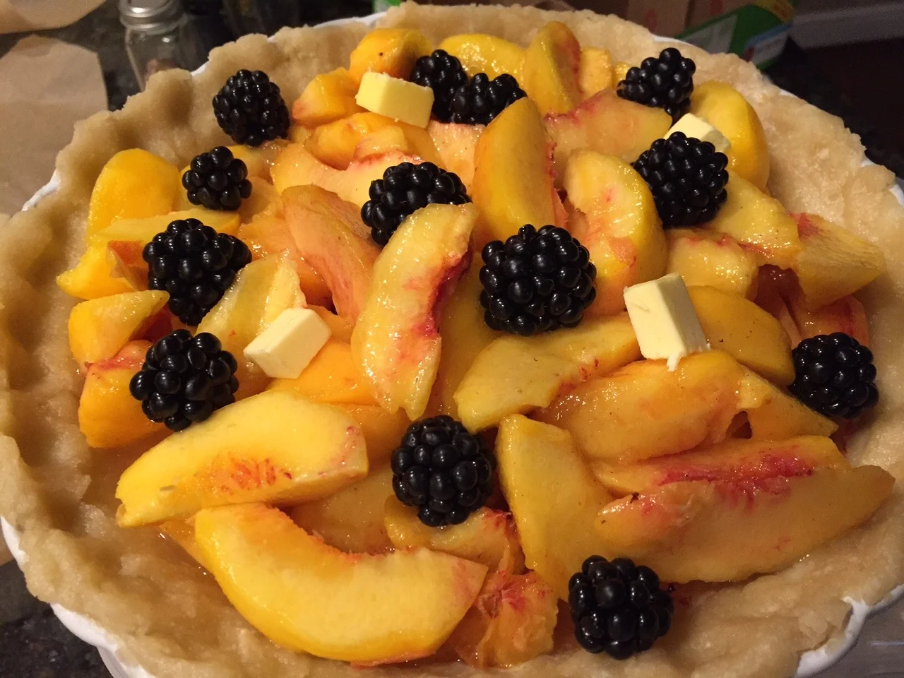 Back to the pie. I have, over the years, worked on what is, in my opinion, the best representation of a number of pies: blackberry, apple, coconut, pecan. This summer, I set my sights on their peach cousin, and I think I'm nearly there.
