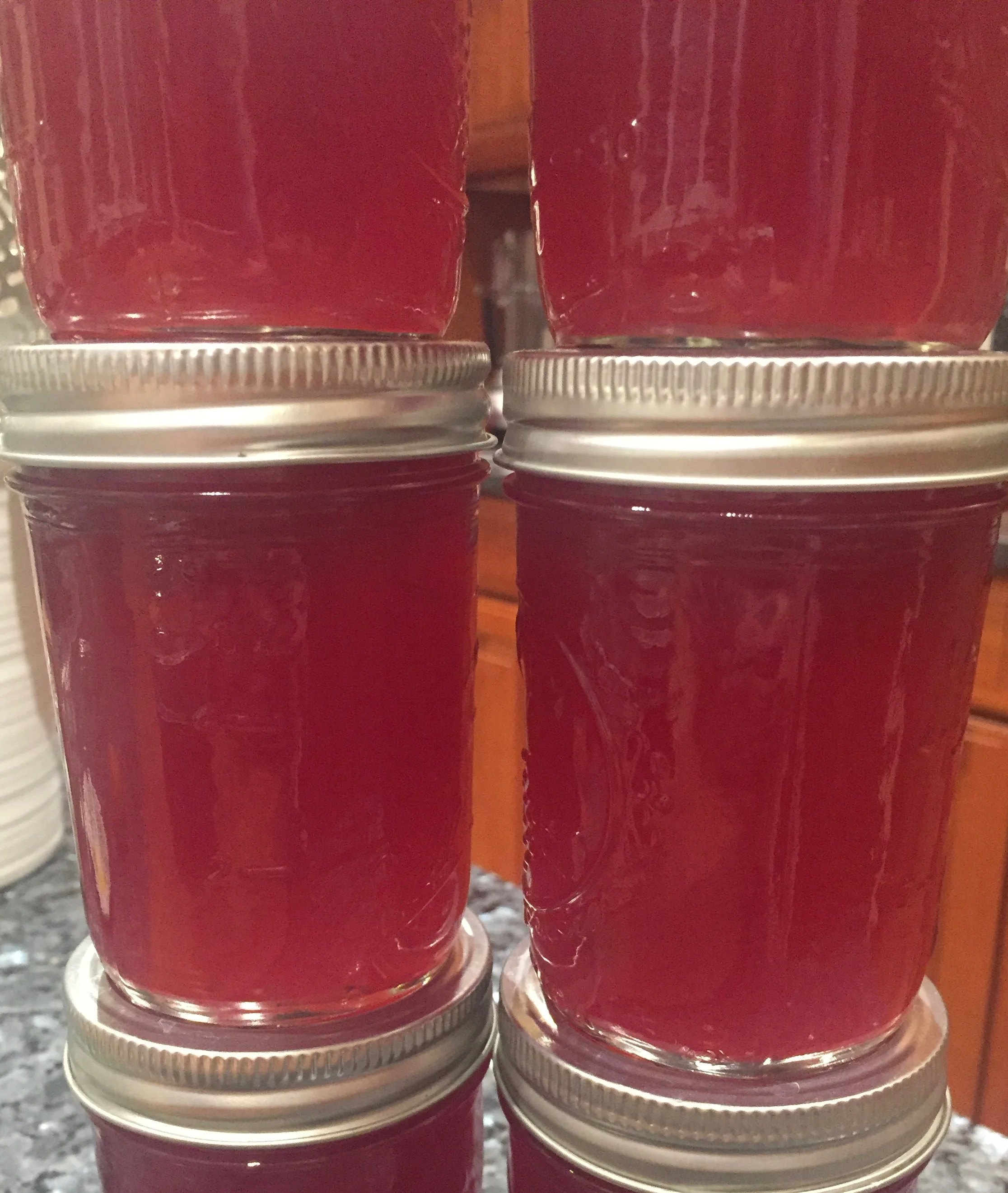 I'm a good jam maker, but jelly is tough. I don't like the taste of synthetic pectins but you need to add some in this case. I try to take a light hand with liquid pectin which has less of an aftertaste but often results in a jelly with inconsistent wobble. It's weird, but I'd rather my jelly be too loose than too stiff. I'd rather spoon than grate, you know?