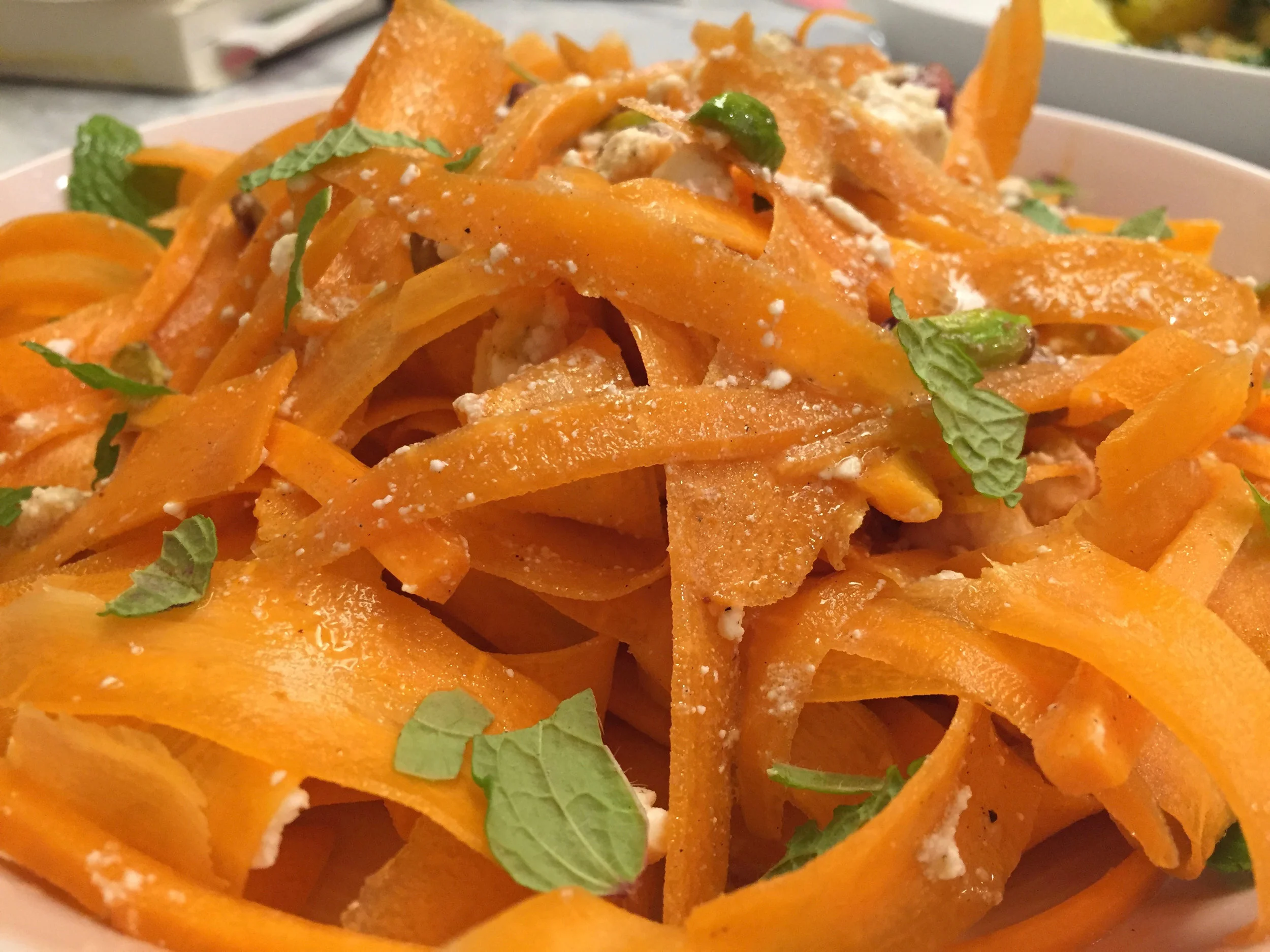 Hers is one of the few blogs I subscribe to, and I recently received a missive about a carrot salad with feta, pistachios, and an orange blossom toss. OMG. That is so up my alley. Simultaneously, I rediscovered the recent New York Times Dining section in which David Tanis -with whom I have a real love-disappointment relationship- shared a gorgeous charred asparagus salad with chimichurri.