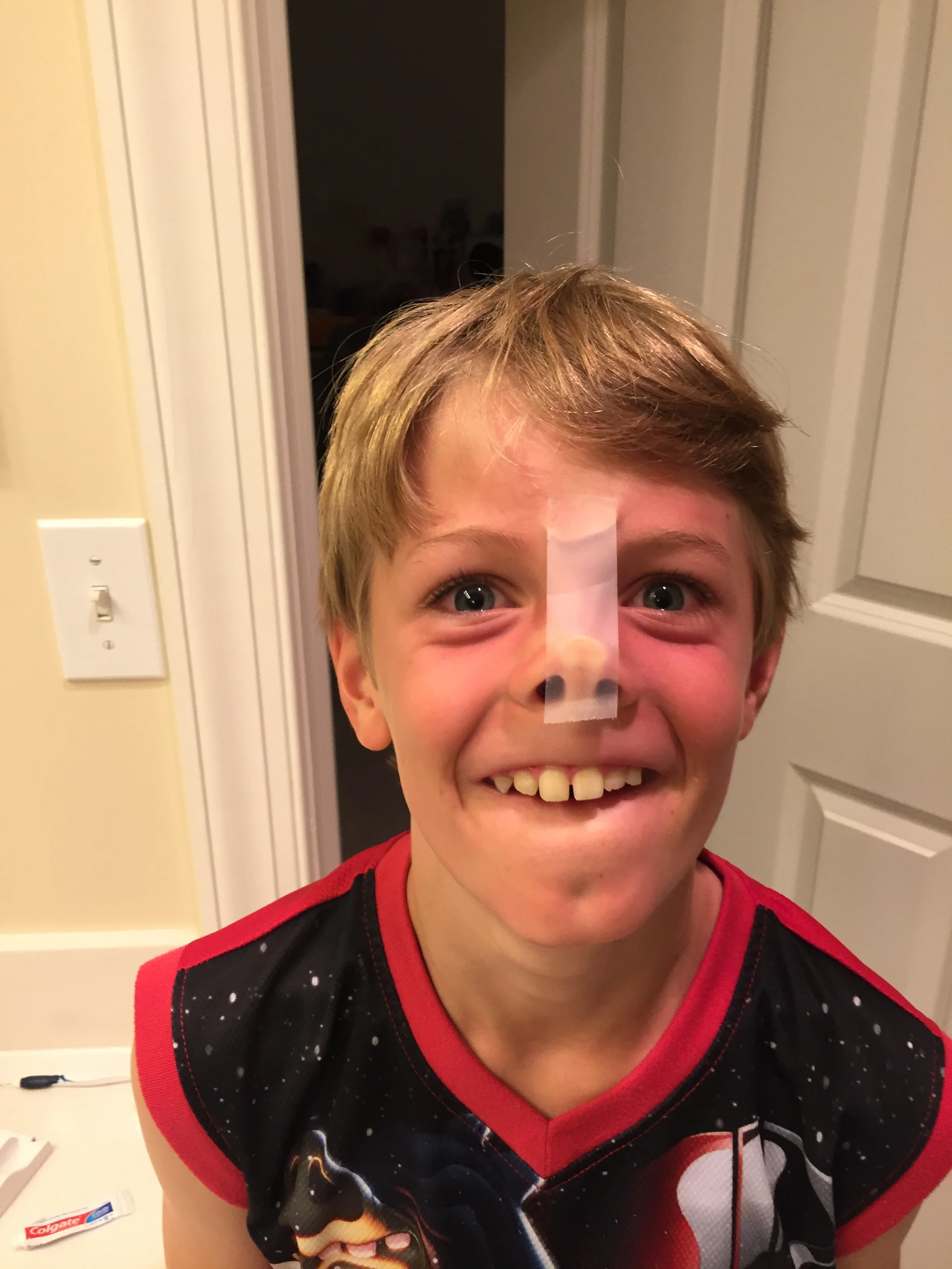 Another 60 minutes later, I check on the children to find that both have drawn red marker and black ink pen beards on their faces and are wearing Italia hoodies. Oliver is drooling onto his pillow-whilst gnawing on corn last night, another top tooth dislodged and so he is now minus his front four which is really pretty significant- and Jack is still awake which does not bode well for tomorrow, the final day of camp.