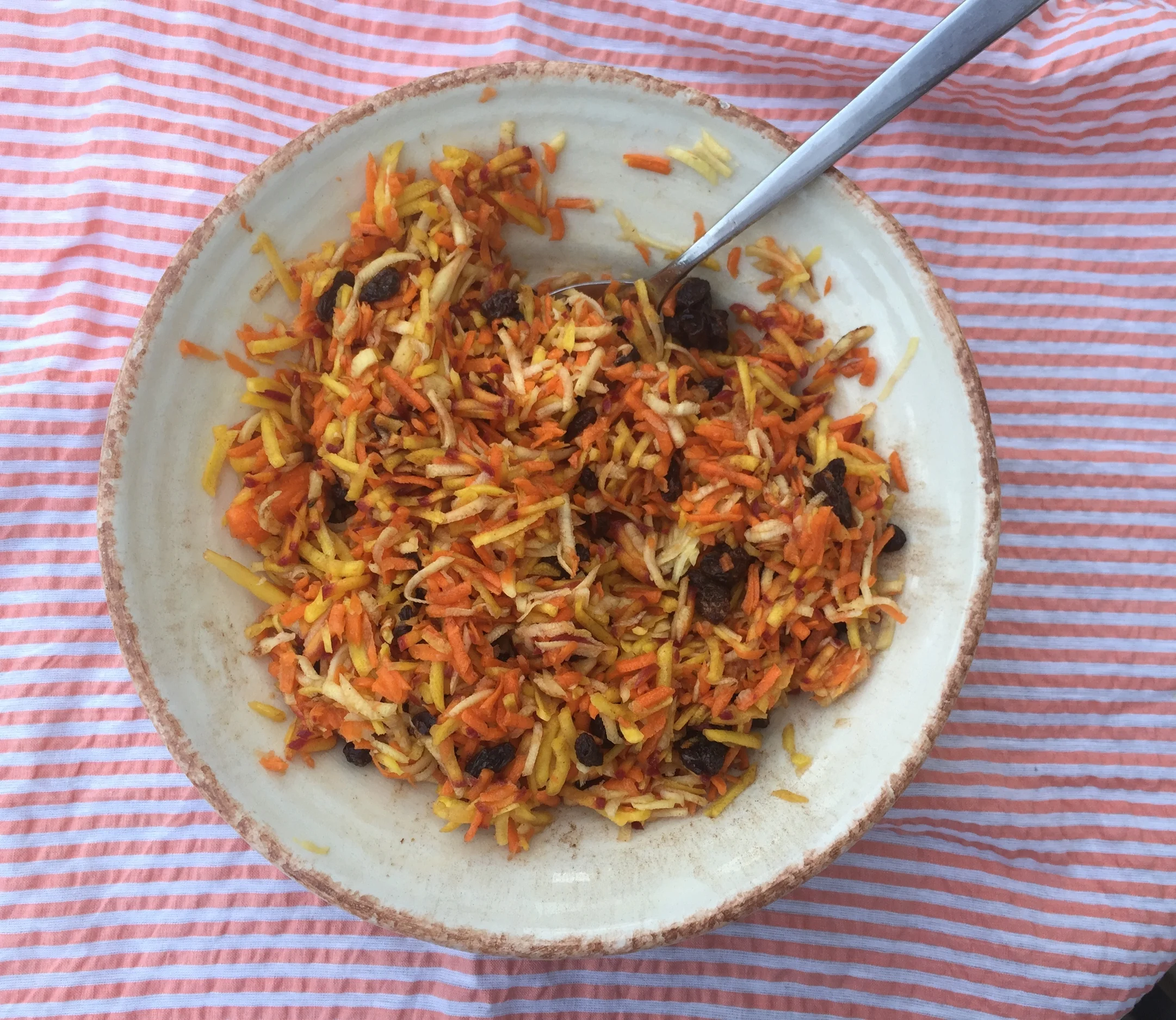 Today I admired and photographed figs and also cooked the boys a lovely dinner that required no more than three teeth to eat and then made a rainbow carrot and raisin salad. The evening light glows so becomingly this time of year; if you can avoid the mosquitan bandits out for all your blood, you will be rewarded with beautifully lit, no flash photos.