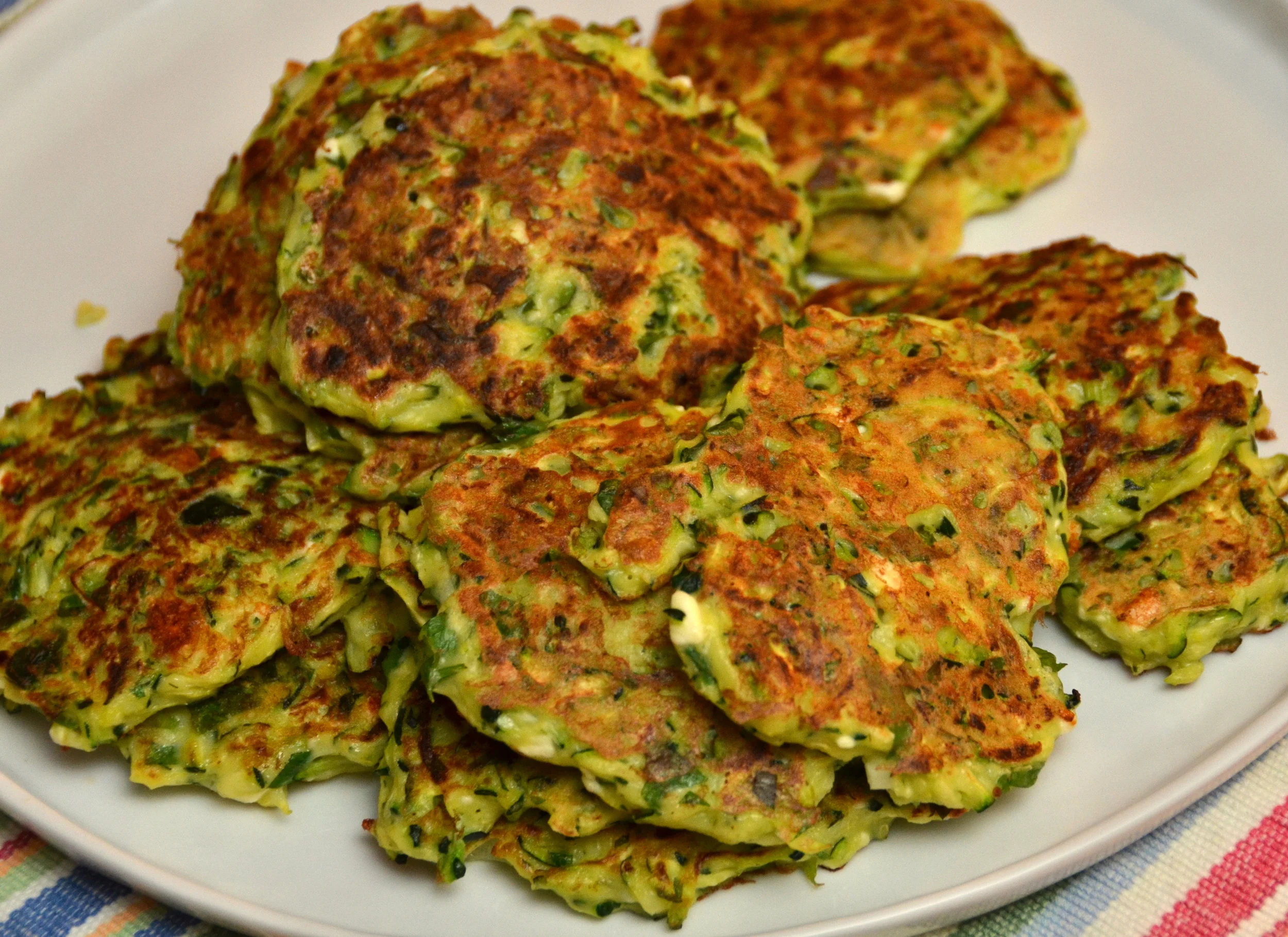 a pile of zucchini-feta fritters