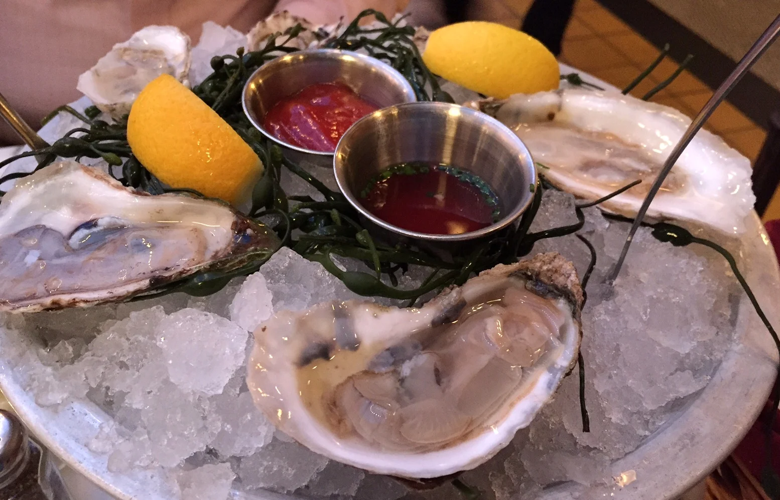 We started with a half-dozen raw oysters because, generally speaking, I love them. Two of the three tasted like seaweed, straight up. I like my oysters briny and OF the sea, but I don't order pricey bivalves to eat salty kelp, you know? And the mignonette was way too strong for the delicate oysters; vinegar gone mad I tell you, and I tend to love me some vinegar.