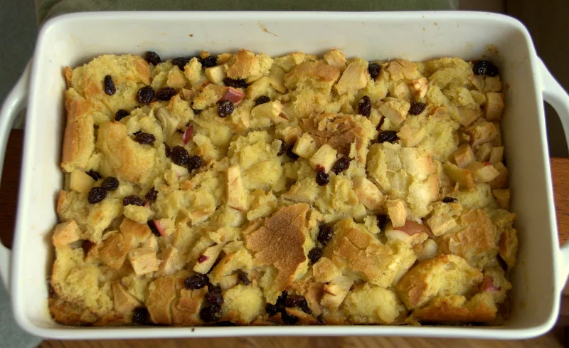 Pour the bread pudding mixture into the prepared casserole dish and slide into the oven. Bake one hour or until golden brown. If the top seems to be browning too early, cover with foil until the last ten minutes of cook time.