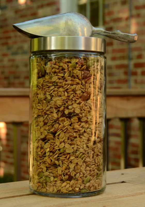 /Summary: This is, simply, the best granola ever. Especially if you make the same substitution I do and use dried cherries in place of the coconut. :) I also use some honey in place of some of the maple syrup. For the original recipe, click here.