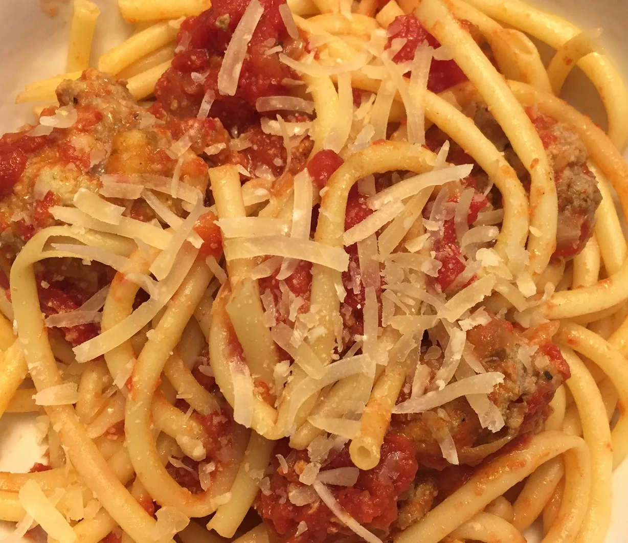 /Summary: In 2009, Gourmet published an Italian-American issue. The cover recipe was this one: the most spectacular meatballs ever. This is the sort of recipe that will make you feel like an Italian grandmother; you will mix and shape and fry and simmer for hours. Really, you need to dedicate a half-day to these meatballs and their sauce. But, if you do, you will be rewarded many times over: a fantastic meal one night, leftovers the next and ample portions to tuck away into your freezer for another time.