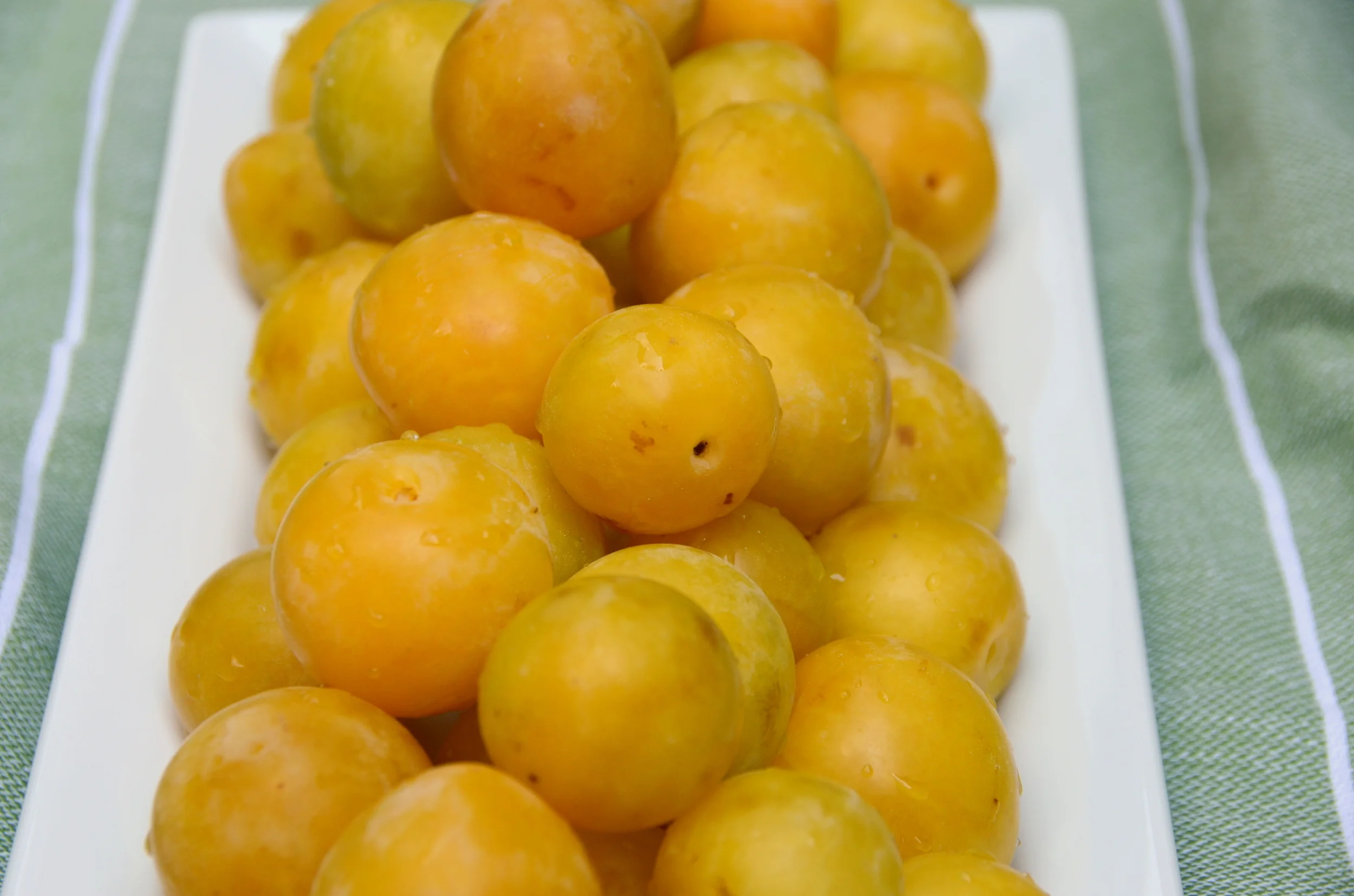 /Summary: Shiro plums are such a lovely color of yellow and are one of the small plum varieties that I have seen at the farmers market in recent weeks. I had about a quart of them left and wanted to make some jam that highlighted their beauty and flavor but had a surprising, savory element too. Basil it was! Just three ingredients, and decidedly small-batch(!), this is beautiful, unique, and so darn good, I'm just eating it with a spoon.
