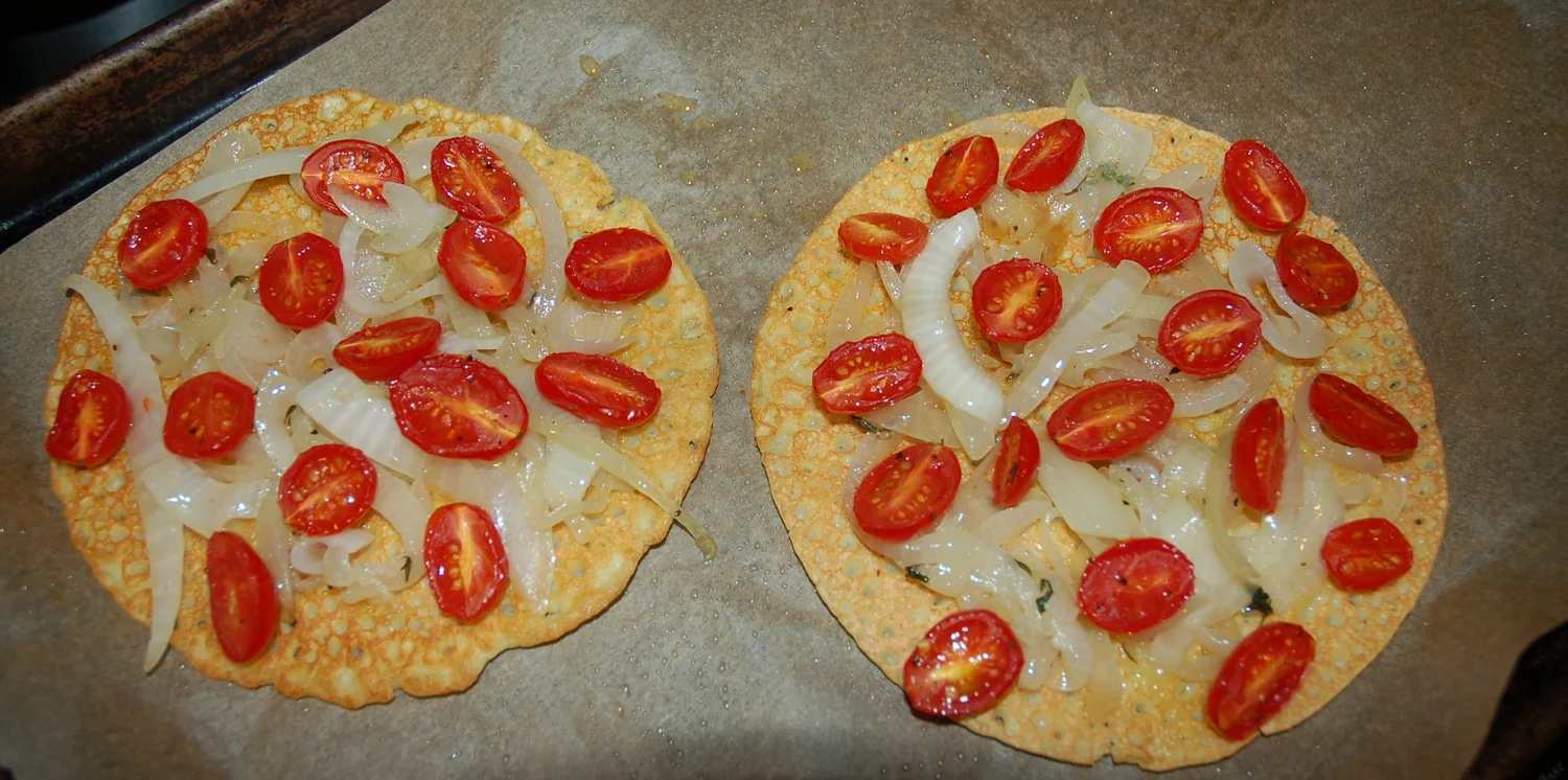 To serve, spread the onion over the pancakes; they should be totally covered. Arrange tomato halves on top. Place in the oven to warm up for about 4 minutes. Serve warm with crème fraîche on the side.
